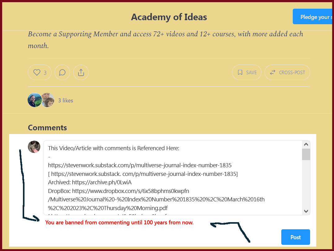 Strangely – he has Blocked by comments, which is that 'Referenced Here' URLs note, which strangely enough the last one which is where I discovered the Block on SubStack was about Ego-Death which I happen to have written about in my post .. my personal experience with ego-death (if interested see PS URLs for Index Number 1835:, March 16th, 2023, Thursday Morning, archived)