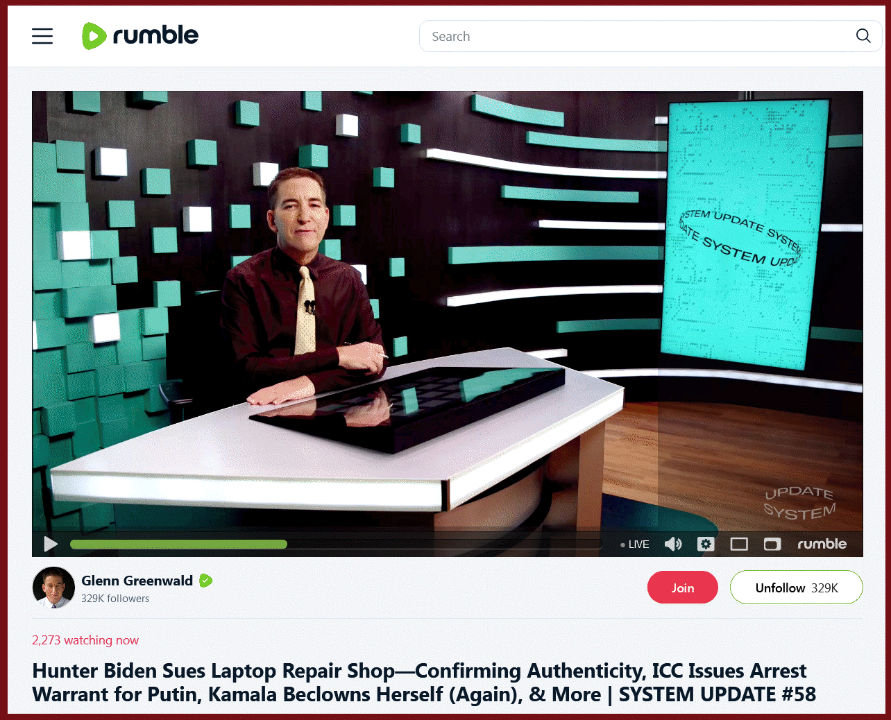 “Hunter Biden Sues Laptop Repair Shop—Confirming Authenticity, ICC Issues Arrest Warrant for Putin, Kamala Beclowns Herself (Again), & More | SYSTEM UPDATE #58”