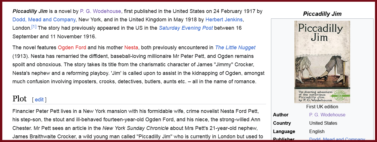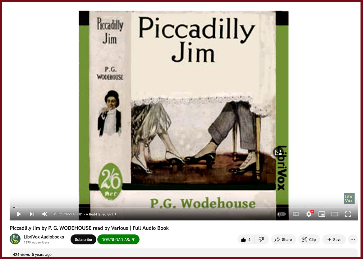 Another Public Domain audiobook 'Piccadilly Jim' (archived) by PG Wodehouse (archived).