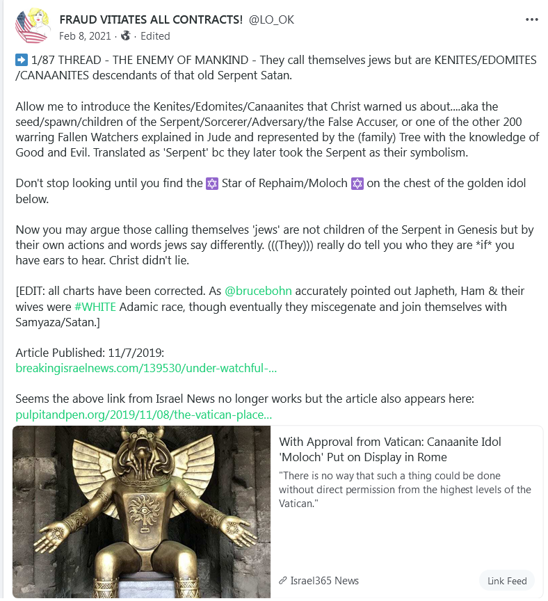 ( .. exclusive for SubStack because the Vagina-god Satanic Witch owners and directors of Facebook are Mind-Raping horrors that Hate us and want us suffering endlessly and Burning in Hell - They Lying, Censoring, manipulating and benefiting from our life-long and generational Suffering from lies and ignorance they Profit from. Mind-controlling slimy lying Hate-filled Female-Evil vile horrors that are a Curse on Life, Love, Joy, Peace, Liberty, Rationality, .. and our souls. — May these Profit us by helping see and consider some of what the Satanic minions of the Witch-Matriarchal ruling families want to hide from us.)