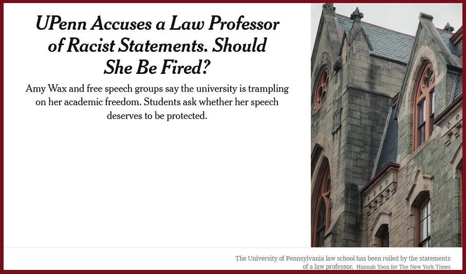 “UPenn Accuses a Law Professor of Racist Statements. Should She Be Fired?”