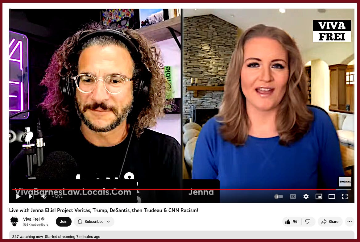 “Live with Jenna Ellis! Project Veritas, Trump, DeSantis, then Trudeau & CNN Racism!”