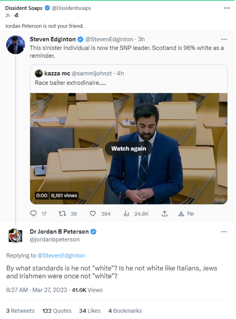 Did not get far in this at all – but Prof. Peterson makes sense when it comes to allowing risk-taking and not feminizing .. but I am sure will avoid the clear Fatherlessness or when it comes up will blame men, and will not argue that the removal of men and the protections of men from women from fields such as education and other child-care and raising will not be given the degree of significance – if mentioned at all .. the vomit-filled Sickened and Sickening modern Western womanhood – many Poison Snakes that we have been mind-raped into not noticing – even as they kill and mutilate us and those close to us.