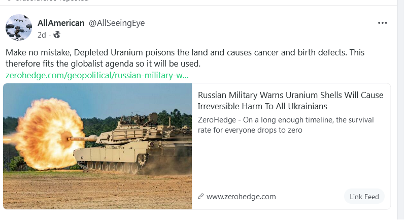 In yesterday's posts connected to the lies and removed context of the Horrors of Depleted Uranium (archived) us – the generations of birth-defects in Iraq which is part of this GreatSatan's Legacy of Horror .. the pretending that such was fine to use because they would not explode and those 'crazy' Russians were unreasonable in the deployment of nukes closer to the area the Witches were using to murder Christians and Poison the land for thousands of years .. I suggest that it Just to kill such slimy lying horrors that used standard Female-Evil mind-raping to excuse his Satanic Masters Evils and victimize further the victim of all this GreatSatan's Evil.