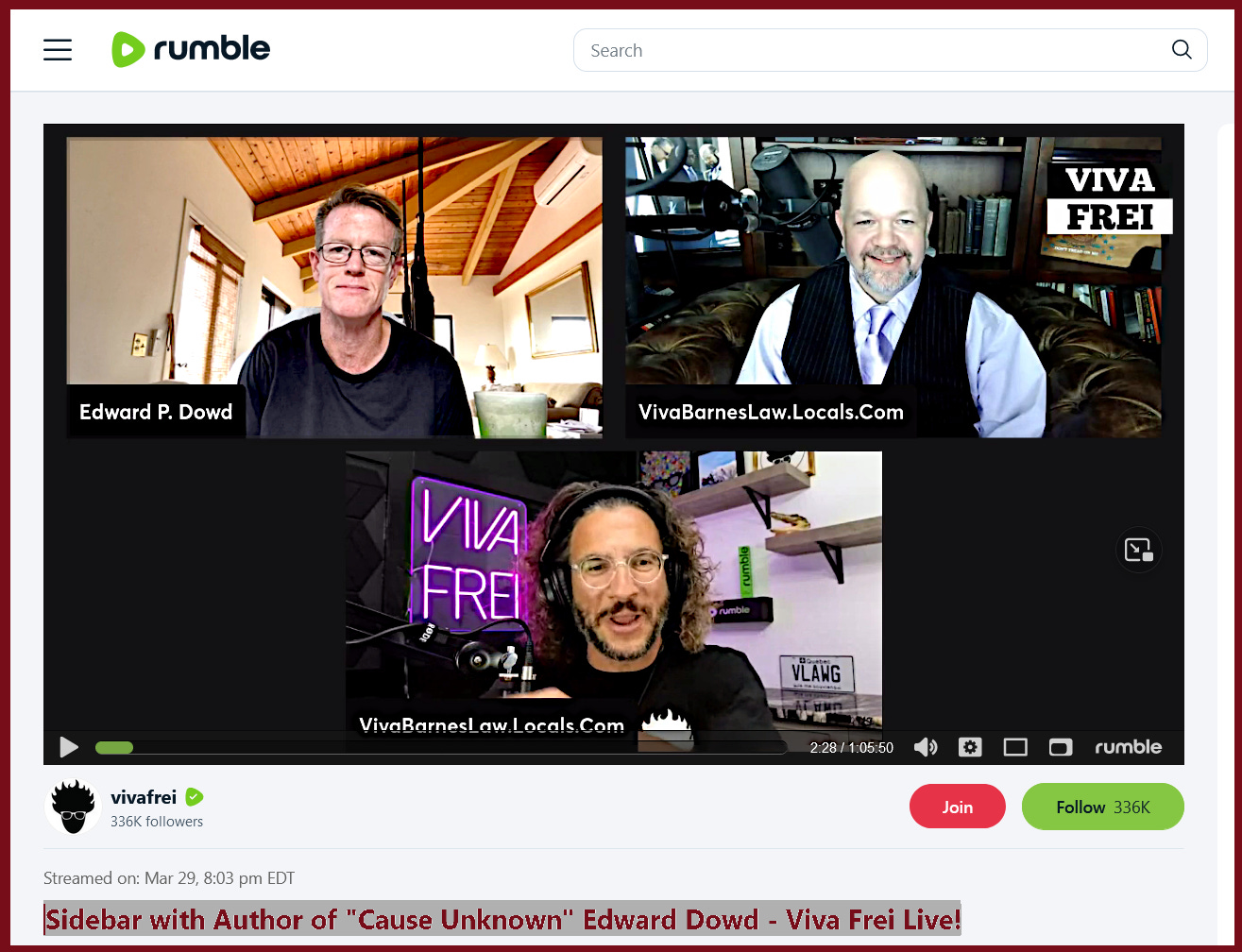 https://rumble.com/v2fcwwq-sidebar-with-author-of-cause-unknown-edward-dowd-viva-frei-live.html