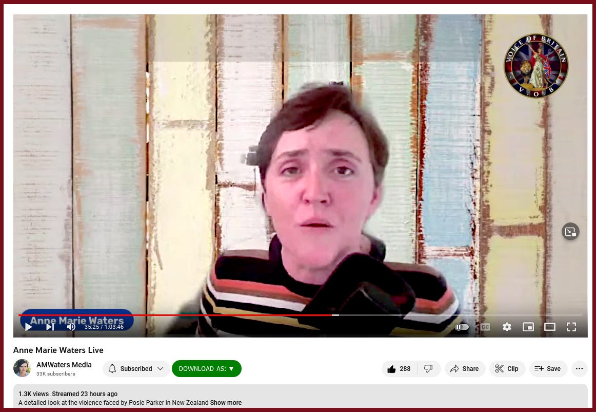 Another good video – one of her recorded live – and she continues the issues related to Posie Parker's reasonable position (as most sane peoples) on the threat to women of the Trans movement – violence in efforts to silence debate, interfering with our Freedom-to-Hear, and the Horror of Golden-Calf Satanists' mind-raping New Zealand media, with howling-cnt Fascist Female-Evil Green-Leftie 'mommy-Dearest' VagFeelie-cnts screeching and confusing issues, RedHerring issues, and more Female-Evil crap.