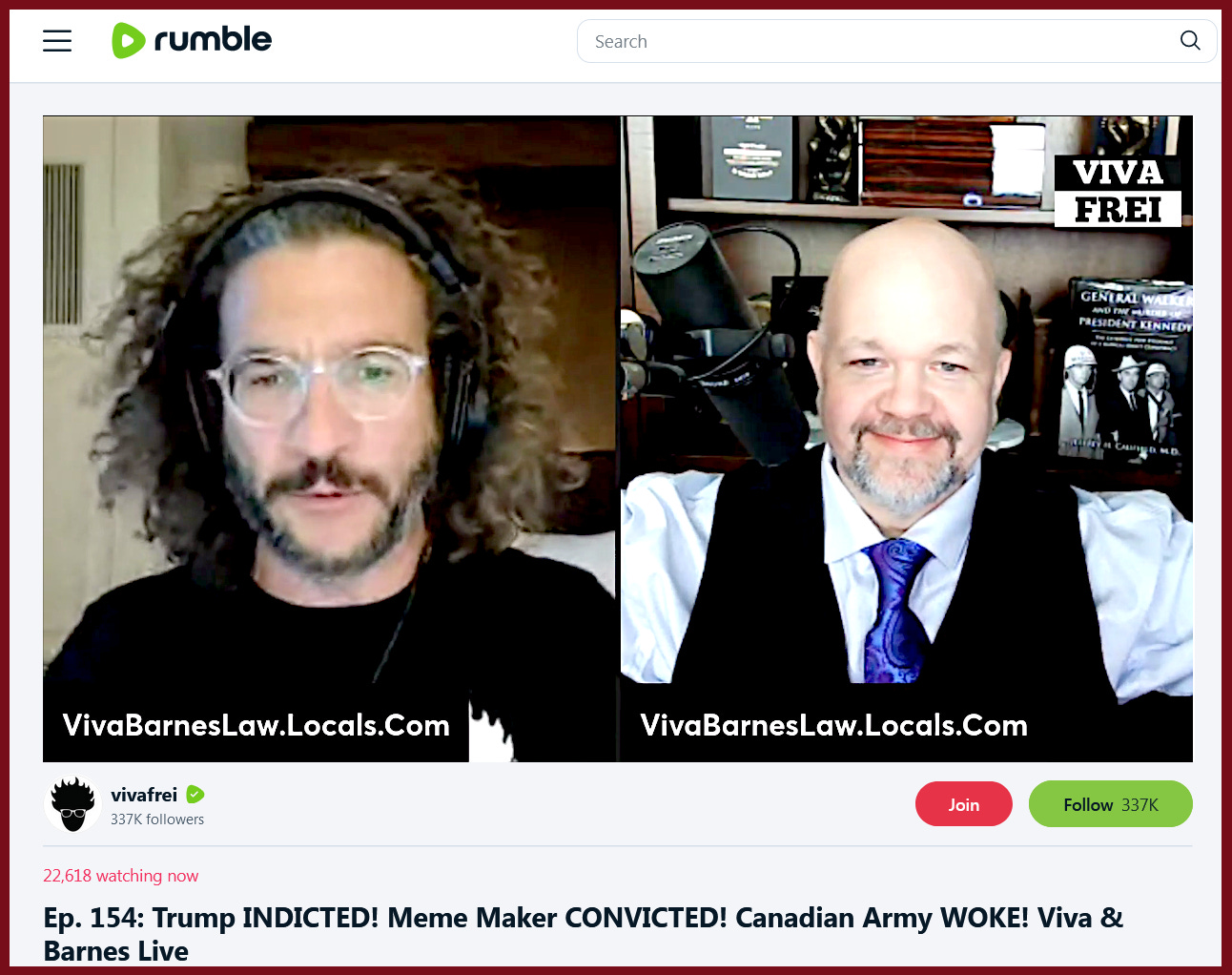 “Ep. 154: Trump INDICTED! Meme Maker CONVICTED! Canadian Army WOKE! Viva & Barnes Live”