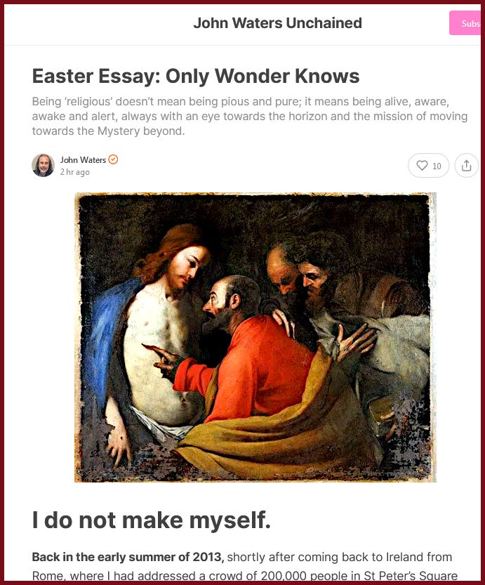 https://johnwaters.substack.com/p/easter-essay-only-wonder-knows