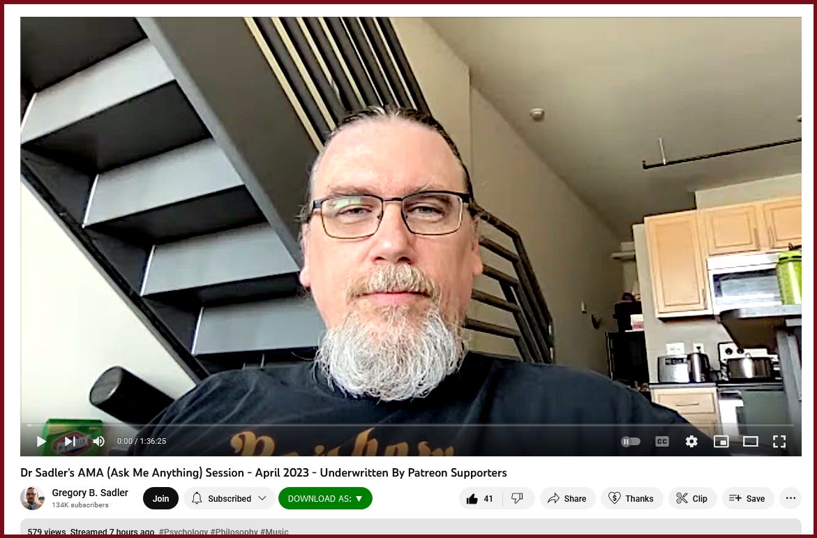 “Dr Sadler's AMA (Ask Me Anything) Session - April 2023 - Underwritten By Patreon Supporters”