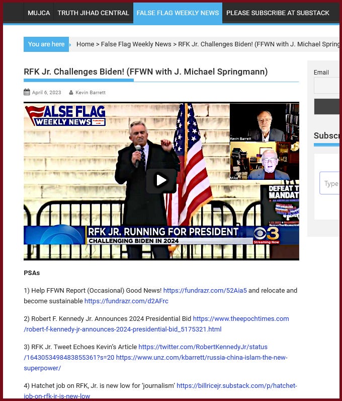 https://kevinbarrett.heresycentral.is/2023/04/rfk-jr-challenges-biden-ffwn-with-j-michael-springmann