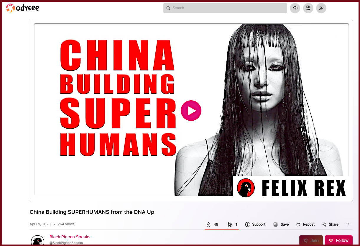 https://odysee.com/@BlackPigeonSpeaks:c/china-building-superhumans-from-the-dna:3
