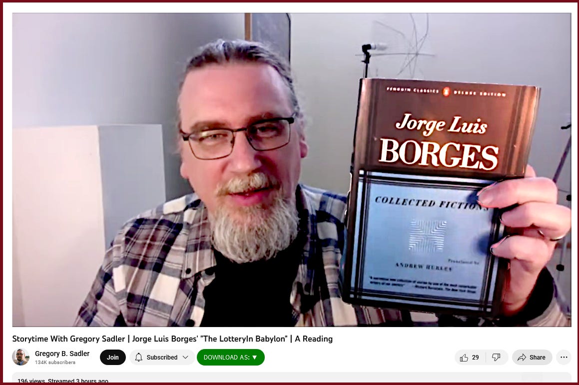 “Storytime With Gregory Sadler | Jorge Luis Borges' "The LotteryIn Babylon" | A Reading”