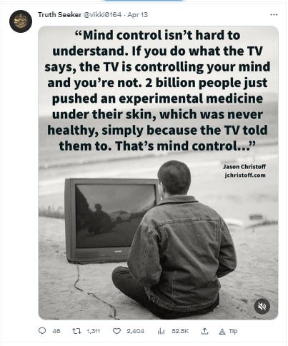 .. which I think is a good analogy of those demonic voices that direct you – often sounding like your mothers or some authority that you have been programmed from crib with 'I love you' and 'I care about you' or the 'I am a professional who is obligated to help you' .. lies and vomit that today is so widely abused that nearly anyone who positions themselves over another – that persons removal is likely the best action. Today – except for a very few – anyone with [Secular] power over you can only have it through Satan, and their death is likely Just [as a good argument for the death of all older women in their family is Just – could be made, and those people who Shaped them.]