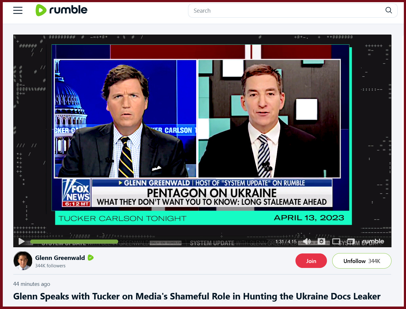 “Glenn Speaks with Tucker on Media's Shameful Role in Hunting the Ukraine Docs Leaker”
