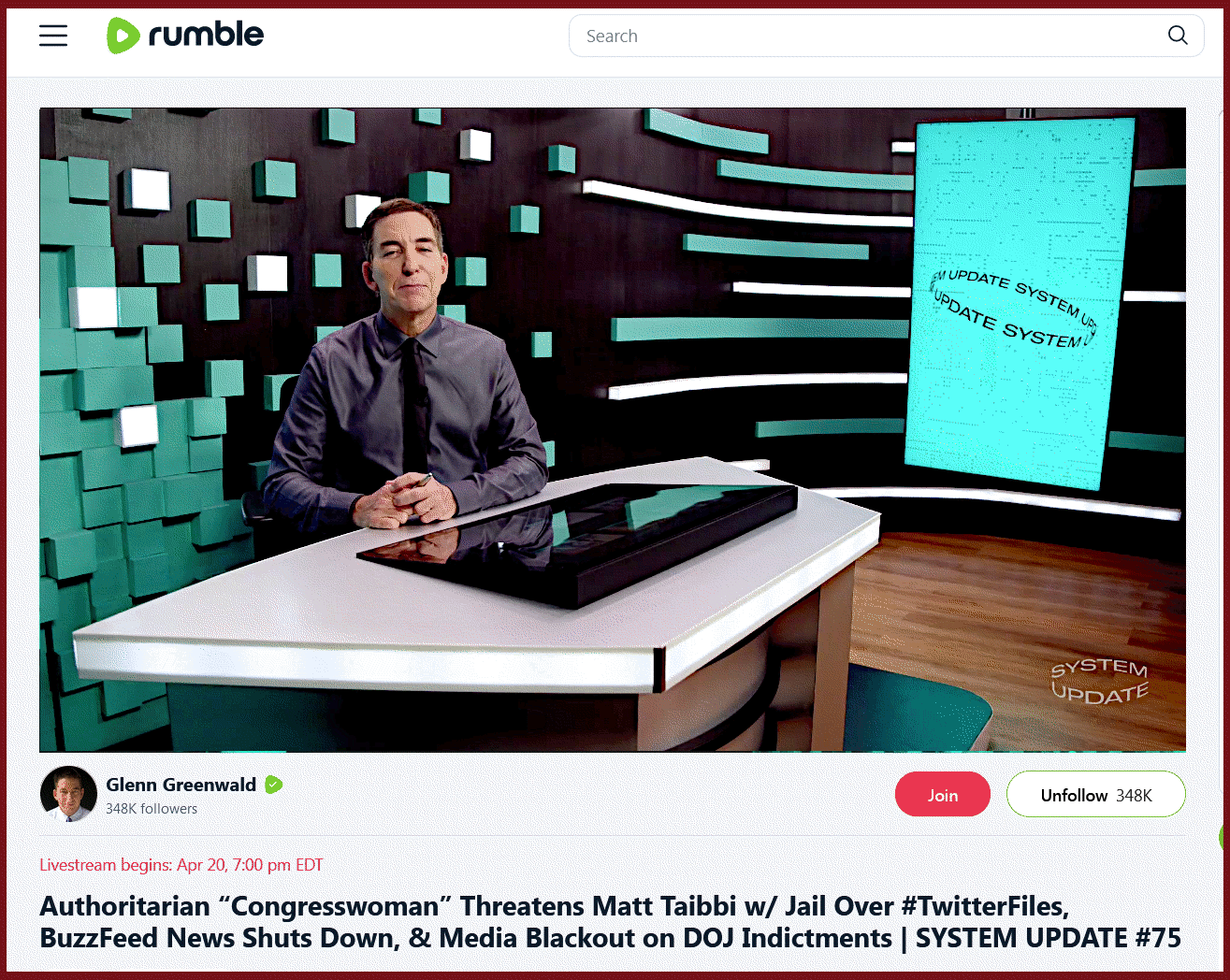 “Authoritarian “Congresswoman” Threatens Matt Taibbi w/ Jail Over #TwitterFiles, BuzzFeed News Shuts Down, & Media Blackout on DOJ Indictments | SYSTEM UPDATE #75”
