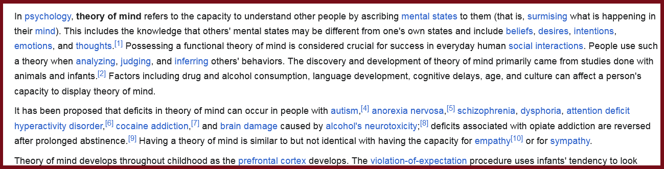 I have not gotten to comment on all these – as usual – yet there are things of value in each if you have time, and you might watch and wonder – and practice your 'Theory of Mind' (archived) and consider what I might have written about them.