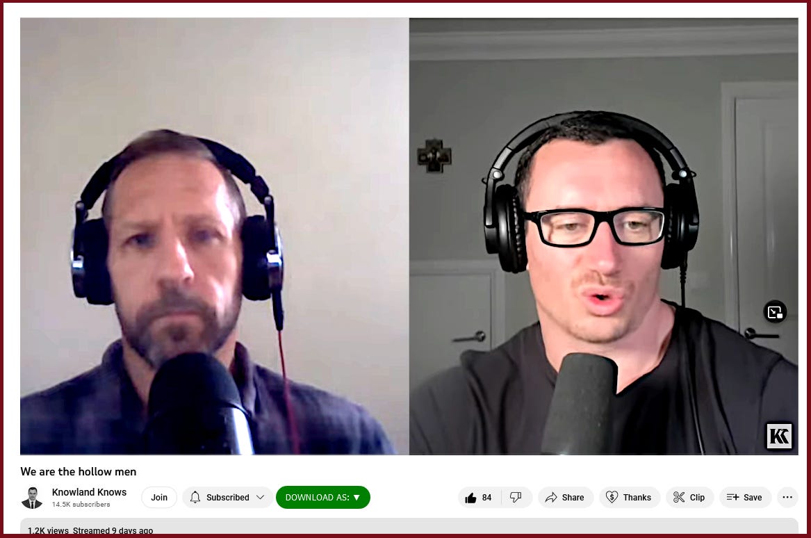 'Jonathan Pageau, John Vervaeke, and Paul VanderKlay for a two-day event with presentations, conversations, and break-out sessions using the Estuary Protocol, moderated by Kathryn Wilson'