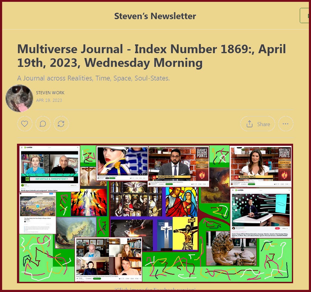 See Post Multiverse Journal - Index Number 1869:, April 19th, 2023, Wednesday Morning archived, Facebook archived, (See PS for fuller URLs.)