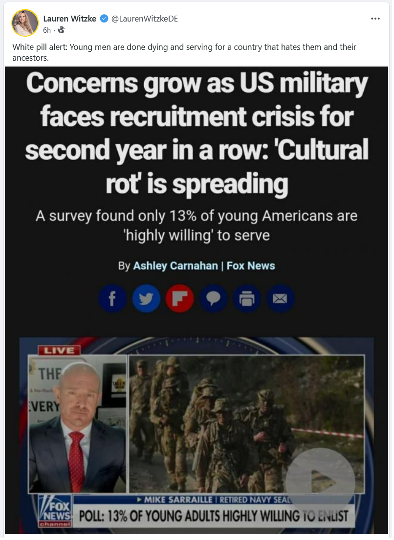 .. So only NOW are the regular minor elites and upper-serfs are noticing all those internal problems and the generations of insane Witch rule and incompetent Affirmative Action vicious unreasoned & lied-based resentment against Merit and Virtuous hard working men and would-be fathers and 45 years of Wage Suppression and using out taxes to pay corpDragons to move jobs and manufacturing over-seas – we are to believe.