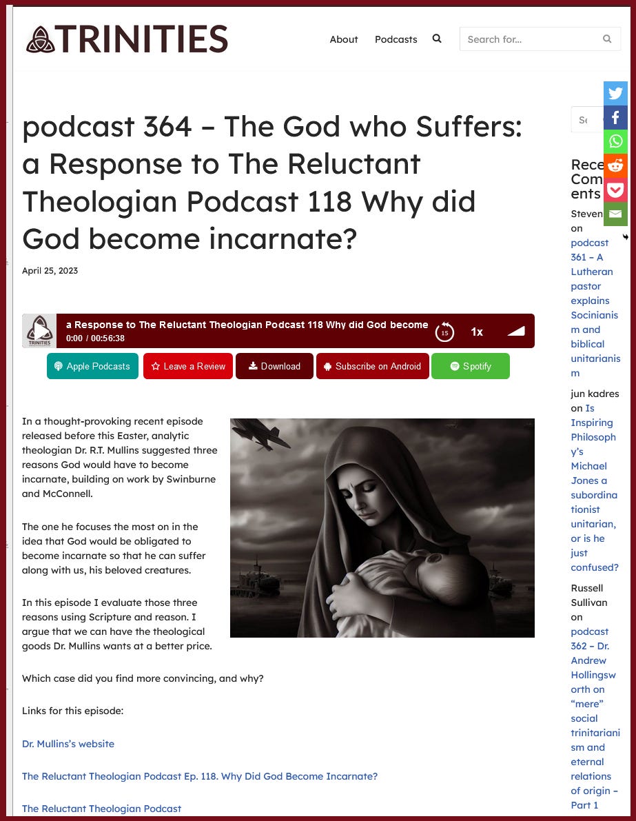 “trinities 364 - The God who Suffers - a Response to The Reluctant Theologian Podcast 118 Why di…”