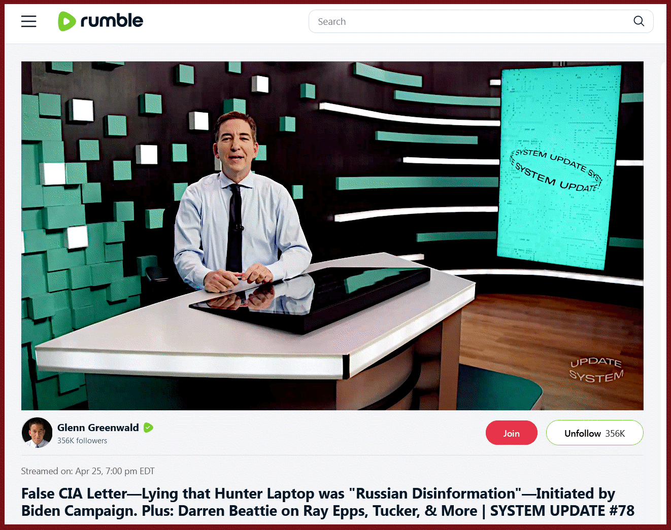 “False CIA Letter—Lying that Hunter Laptop was "Russian Disinformation"—Initiated by Biden Campaign. Plus: Darren Beattie on Ray Epps, Tucker, & More | SYSTEM UPDATE #78”