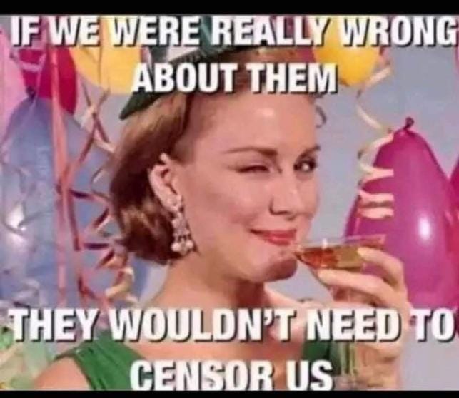 [Current popular Memes and Images - which reflect common thoughts of many - may be found on the SubStack version – Facebook Witches will/have punished my sharing of such.]