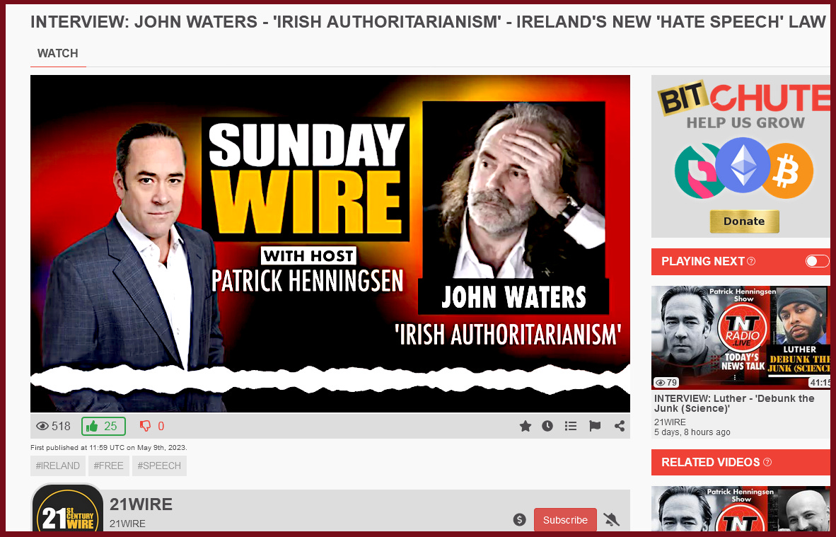 “INTERVIEW: John Waters - 'Irish Authoritarianism' - Ireland's New 'Hate Speech' law”