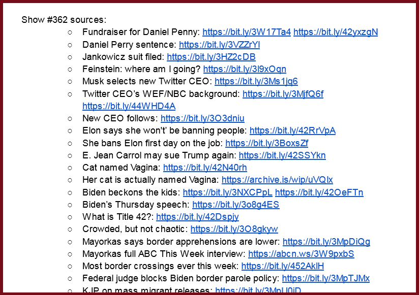 This week lot of good issues and current events discussed in reference to Law, history, relevant background, and similar.