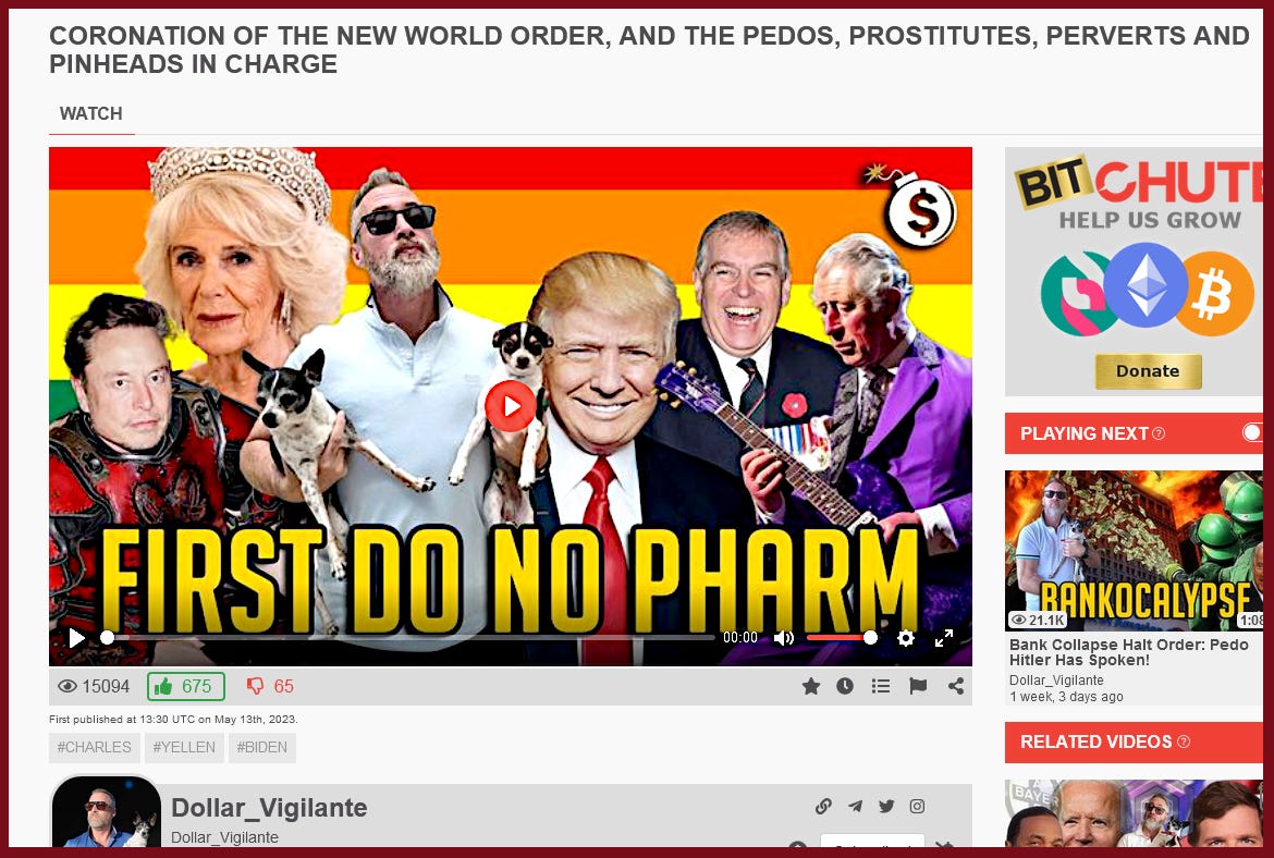 “Coronation of the New World Order, and the Pedos, Prostitutes, Perverts and Pinheads in Charge”