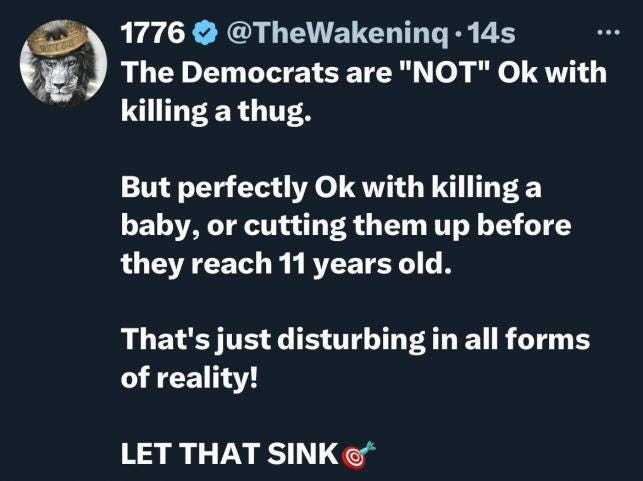 The demonically controlled delusional-psycho modern Western womanhood and the Satanic corpDragons that control governance and enforcement would have us all tortured to death like our babies over such – soon., ..