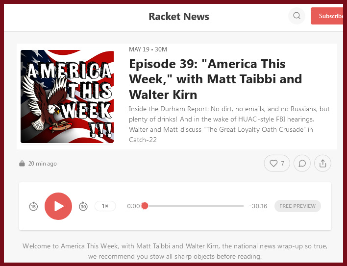 'Episode 39: "America This Week," with Matt Taibbi and Walter Kirn'