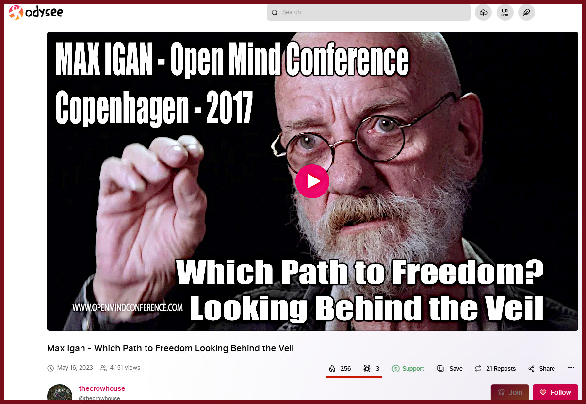 https://odysee.com/@thecrowhouse:2/Max-Igan---Which-Path-to-Freedom-Looking-Behind-the-Veil:5