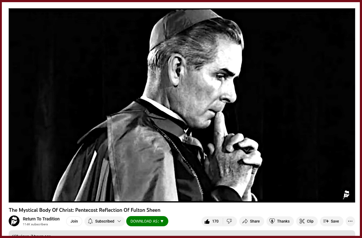 “The Mystical Body Of Christ: Pentecost Reflection Of Fulton Sheen”