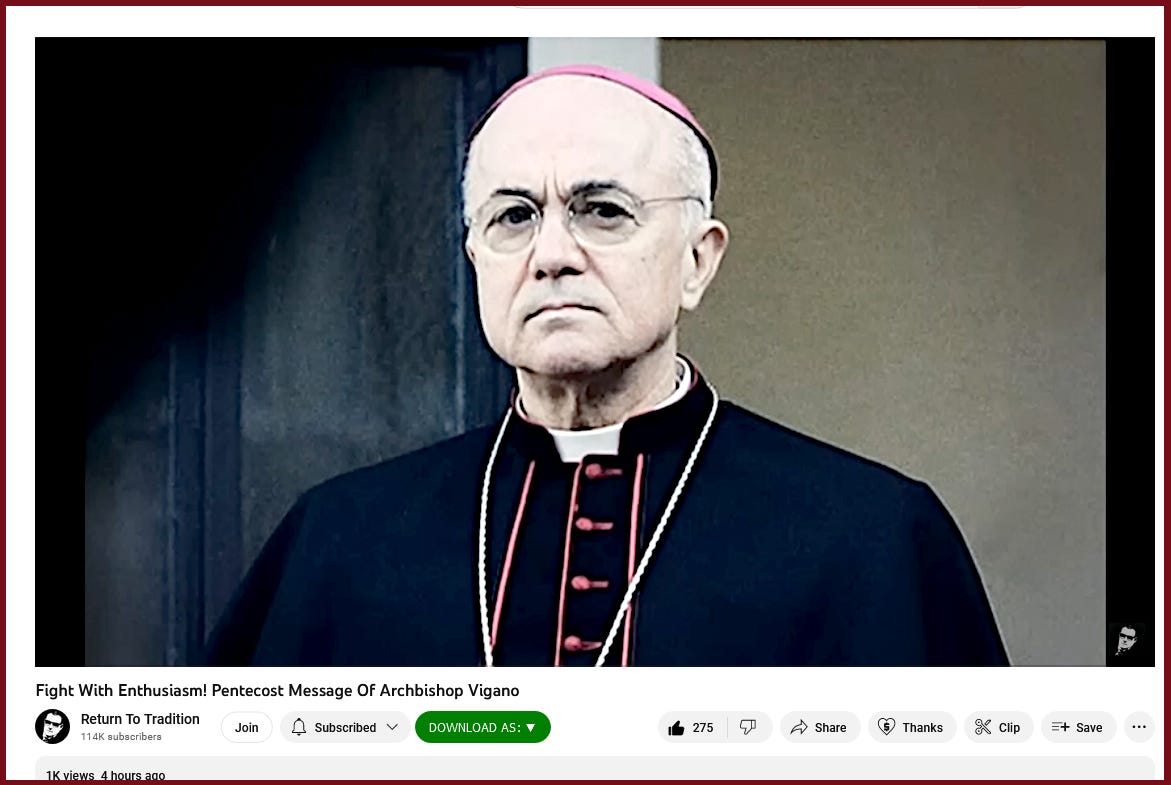 “Fight With Enthusiasm! Pentecost Message Of Archbishop Vigano”