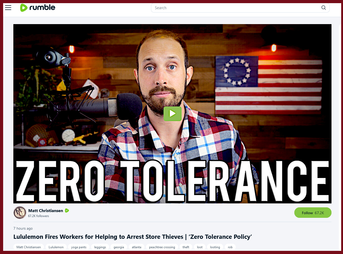 “Lululemon Fires Workers for Helping to Arrest Store Thieves | ‘Zero Tolerance Policy’”