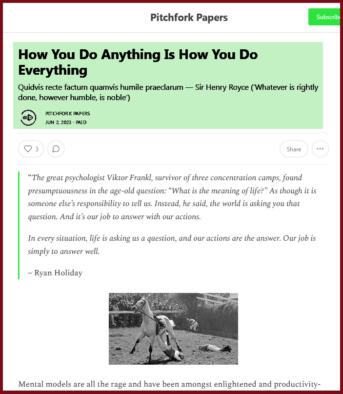 I am not sure how I managed to get subscribed to so many already – yet I get emails and almost every one of them is worth the time. I have become both relief and frustrated by many of the Tease posts where non-paid get to see that first chunk of article, often worth it as stand-alone, and relief that since the time involved would mean something less somewhere else. The Paid is okay not too see because I would not be able to Post them for you to read, and the best is when the Tease has things worth posting.