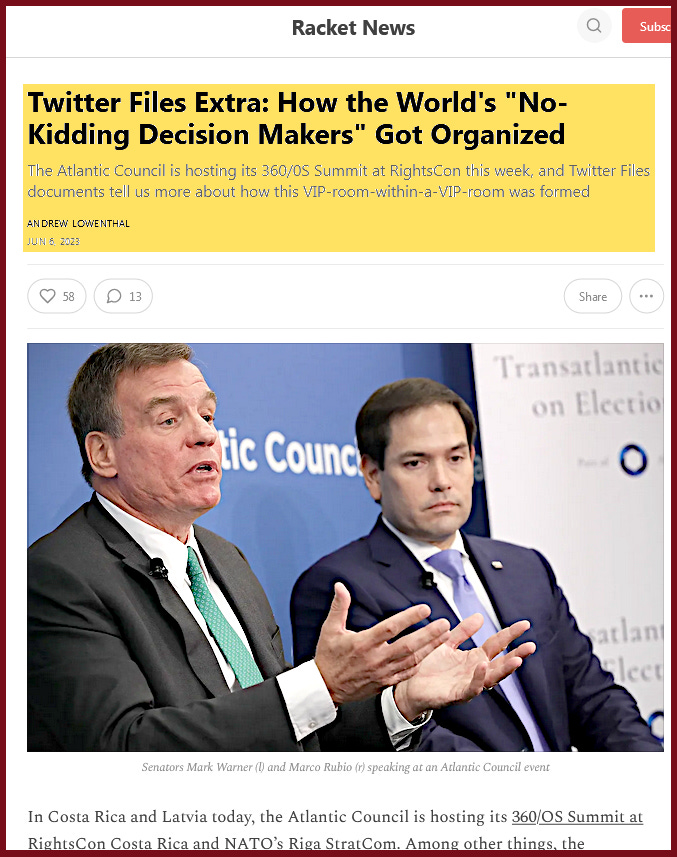 'The Atlantic Council is hosting its 360/0S Summit at RightsCon this week, and Twitter Files documents tell us more about how this VIP-room-within-a-VIP-room was formed' - Article