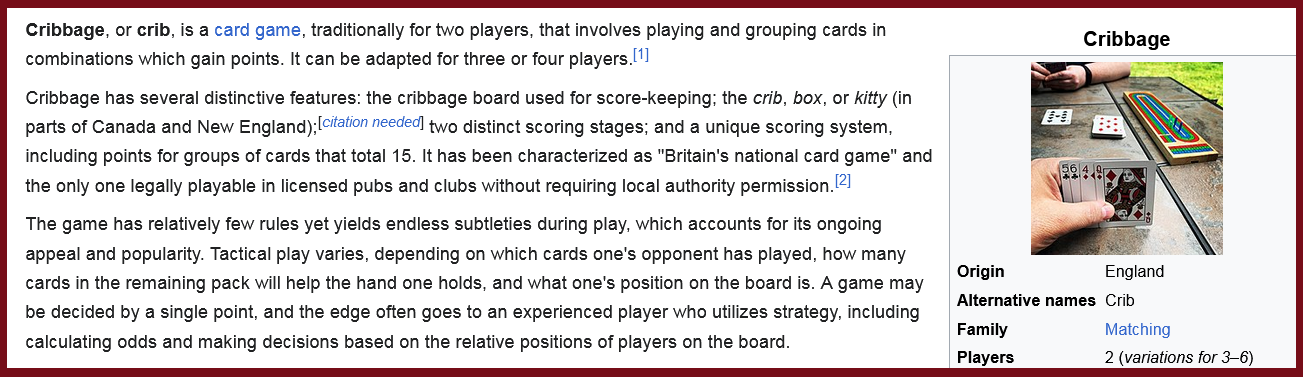 A very good visit – much because my brother seems to be doing well and he moved near-enough to walk over to visit, which I will encourage .. Cribbage (archived) and I want to see if he can play Strategy board games .. the Game of Risk (archived) is easy and fun but requires a minimum of 3 players.