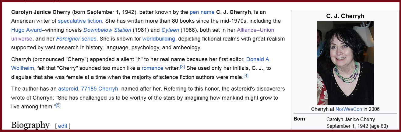 So I purchased another audio-book and am pleasantly surprised that the author might be one I will find a lot of pleasure and value in exploring. The book is by CJ Cherryh (archived) in her 'Alliance Union Universe' (archived)