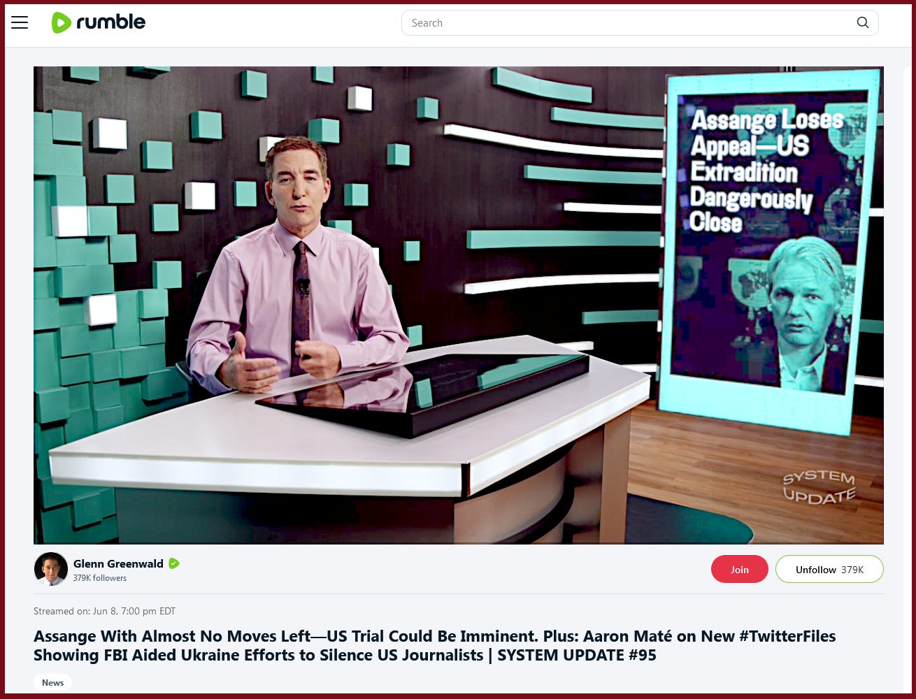 “Assange With Almost No Moves Left—US Trial Could Be Imminent. Plus: Aaron Maté on New #TwitterFiles Showing FBI Aided Ukraine Efforts to Silence US Journalists | SYSTEM UPDATE #95”