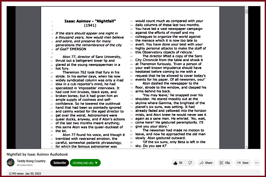 “Transcript: America This Week Discussion on "Nightfall," by Isaac Asimov”