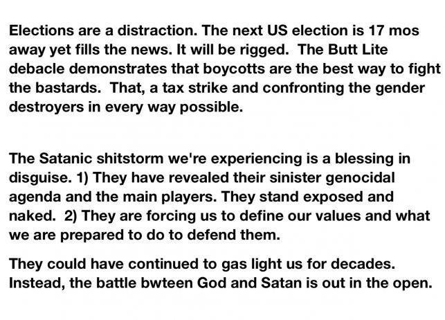 .. when will our Women understand that God Loves them and Wants them to refuse this sin-filled slide into Hell and re-defining Womanhood from the older women who were a benefit and Good-Fruit to society before mid-1960's into the septic self-poisoning baby-murdering child-mutilating male-hating horrors they grasp and expand each generations.