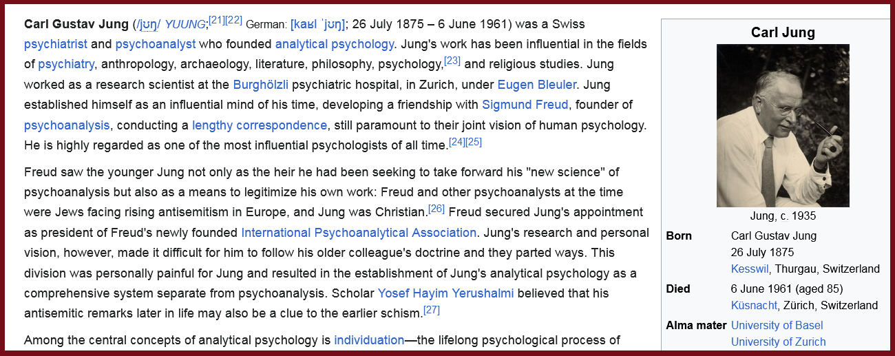 For a number of these posts – almost one per day – I have included some content that is based on a psychologist ( Carl Jung, archived )