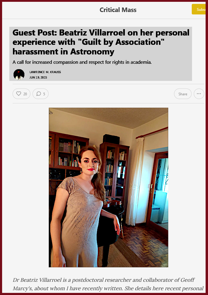 “Guest Post: Beatriz Villarroel on her personal experience with "Guilt by Association" harassment in Astronomy”