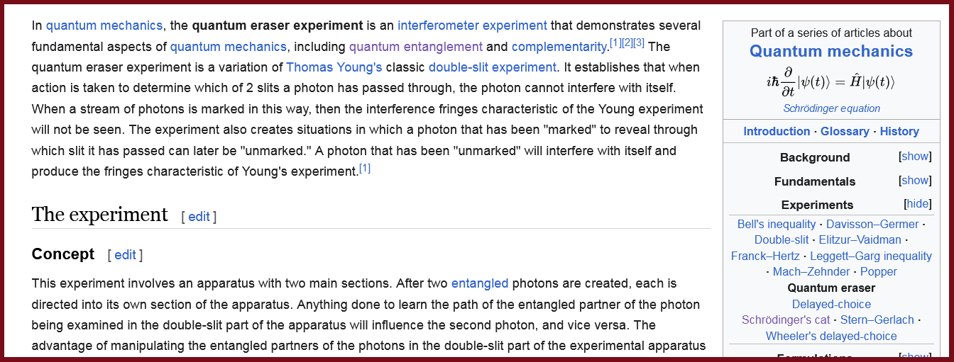 Quantum Eraser (archived) Experiment – Details about 34 minute mark in video, ..