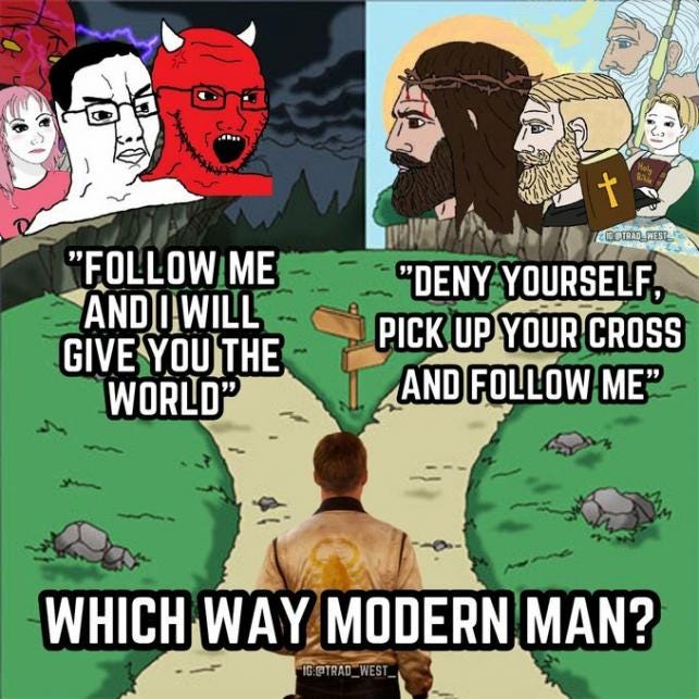 We see this narrowing and reducing of complicated and wide-scope issues into a Black-White strawman form and only two 'sides' are presented and often both sides benefit Satan and the Golden-Calf Witches in power.