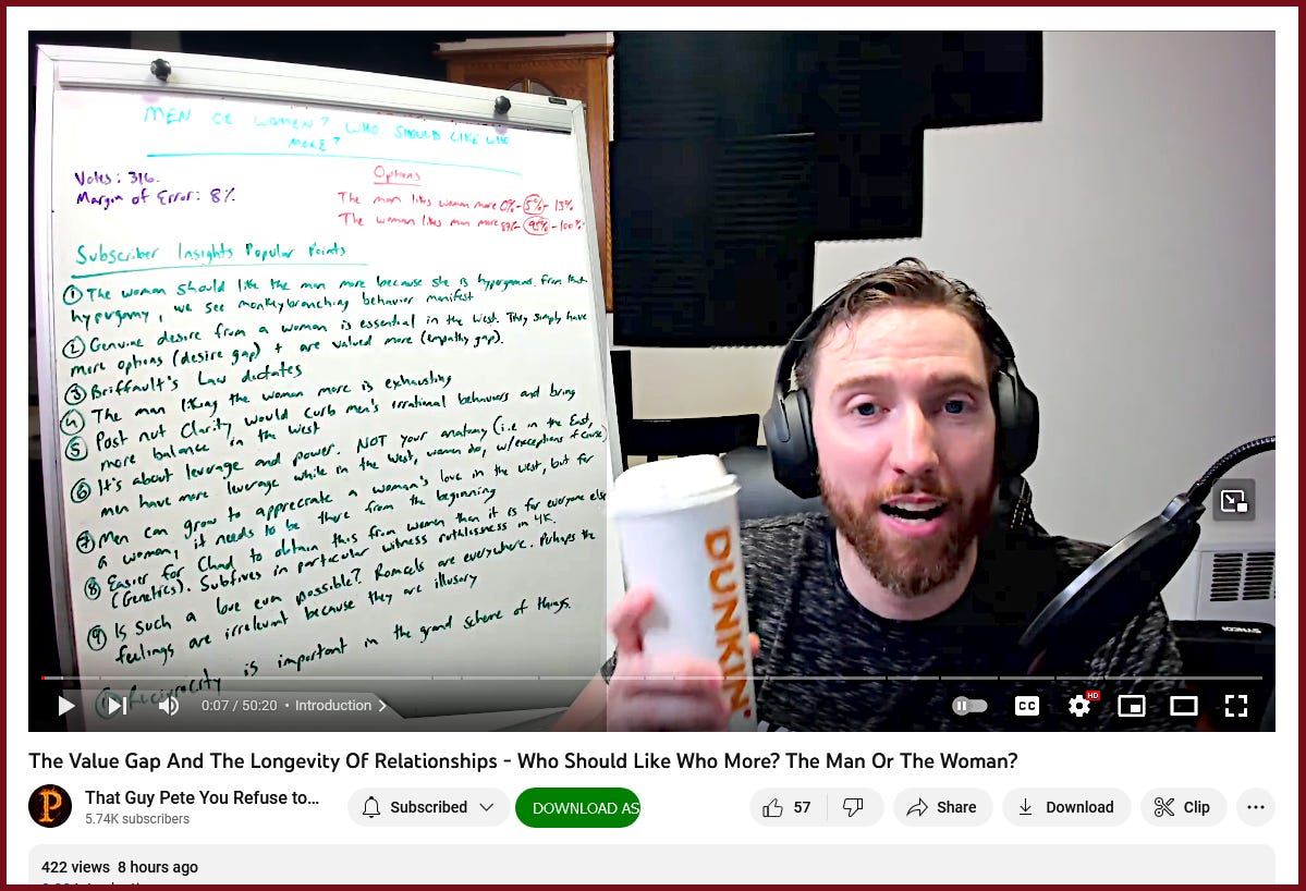 .. but since this guy is valued by many of the women followers and the statistics are nice to know I am including unseen by me yet – His and other Framing of the situation(s) found in the questions asked and comments he reads of the Satanic-Horror cntHell situation we all in, their understanding and what She is doing through all her Witches .. We can see indirectly the effectiveness of Her false narratives, distractions and Strawmen-Shadows and such to be sure we all only ever move the deck-chairs and pass-on such useless and distracting vomit to our children as generations before have done – along with the evil-Blinding of the Witches, and Putrid vile Sickening Womanhood, and the Golden-Calf Satanic Leaders and Powerful and ..., ..