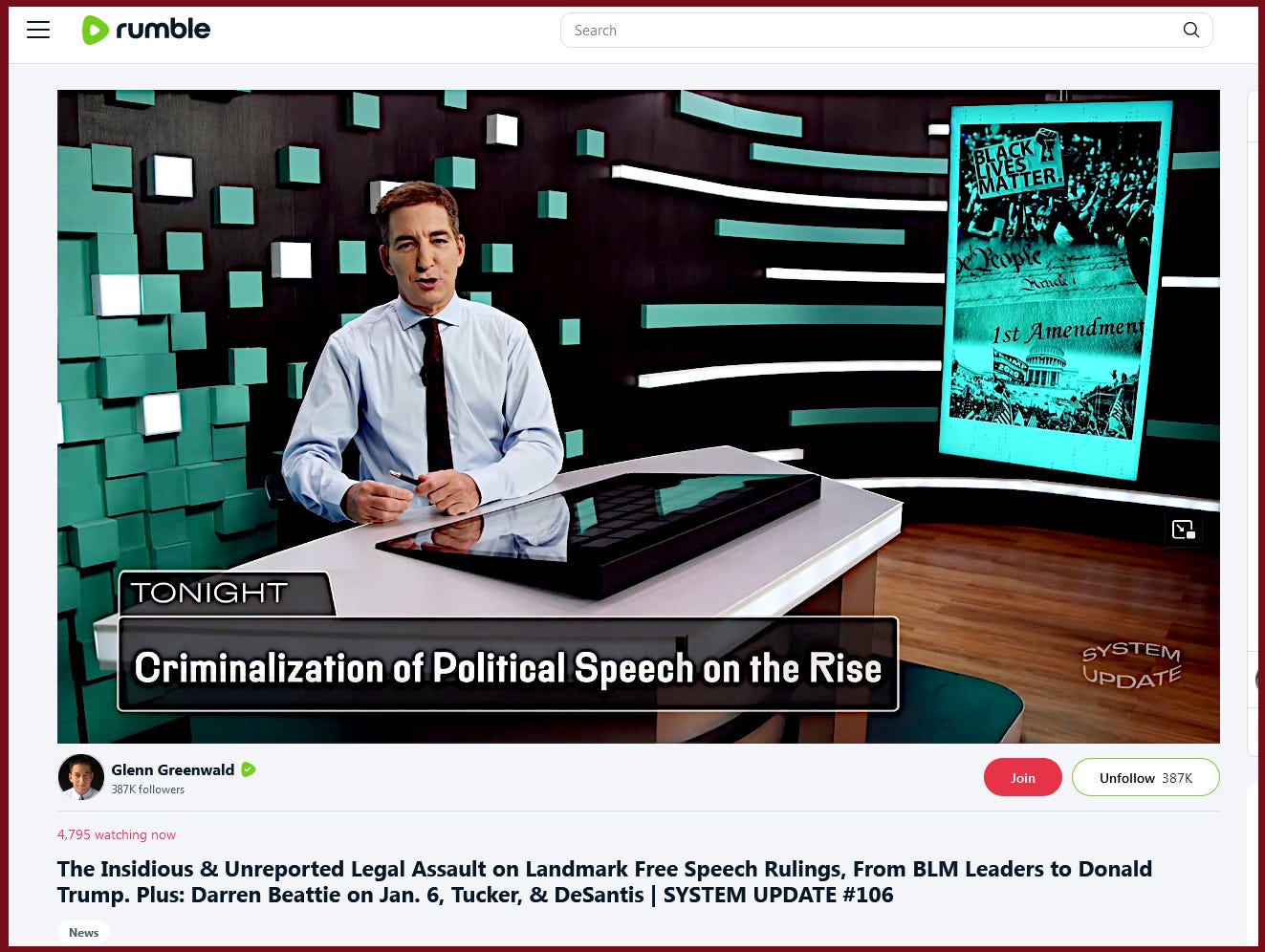 “The Insidious & Unreported Legal Assault on Landmark Free Speech Rulings, From BLM Leaders to Donald Trump. Plus: Darren Beattie on Jan. 6, Tucker, & DeSantis | SYSTEM UPDATE #106”