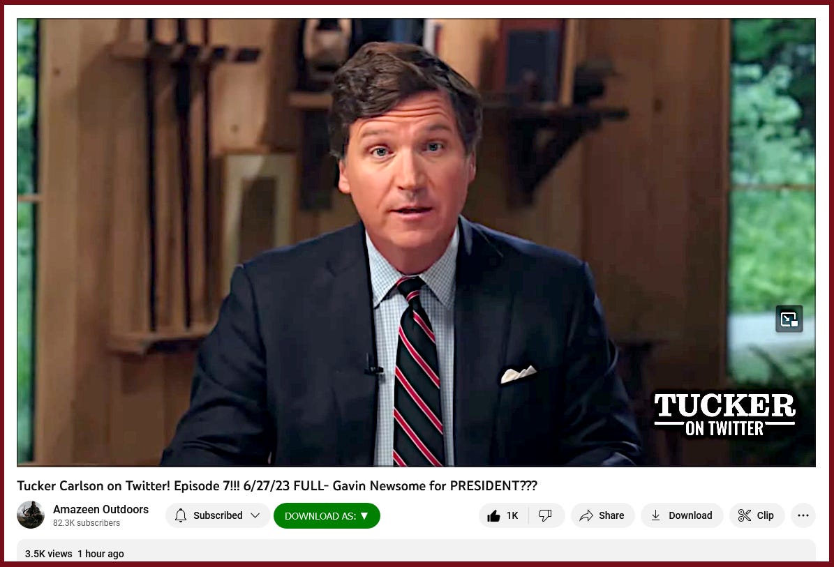 “Tucker Carlson on Twitter! Episode 7!!! 6/27/23 FULL- Gavin Newsome for PRESIDENT???”
