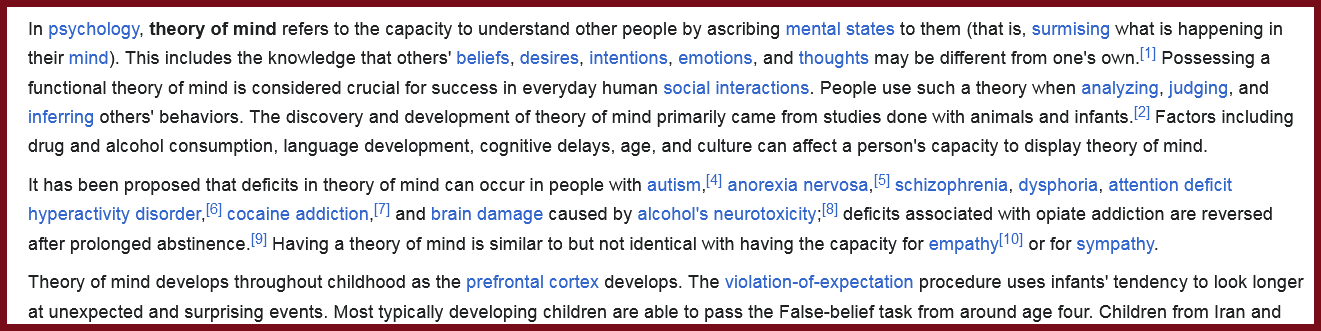 Should we think of them as so Processor Overloaded that they are unable to Simulate and otherwise bring-up pre-set stored - experience generated – lookup-tables related to Theory of Mind (archived)?